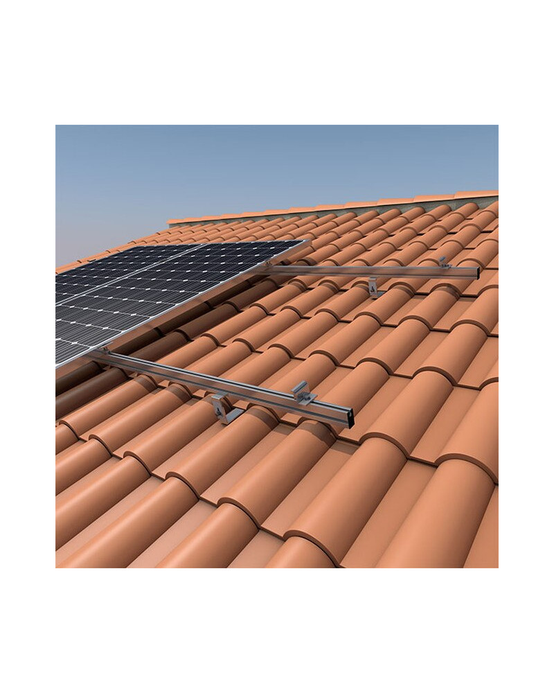 A estrutura Sunfer foi concebida para a instalação fotovoltaica em coberturas inclinadas com telhas. O seu sistema coplanar utiliza parafusos e grampos específicos, garantindo uma fixação firme e um acabamento estético. Ideal para painéis standard, oferece versatilidade, rapidez de montagem e adaptabilidade a diferentes tipos de telhas.